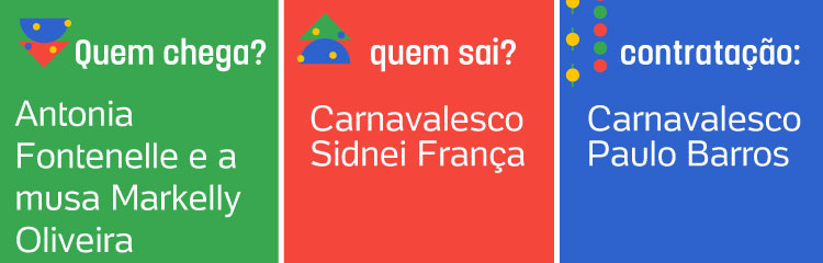 Assim como acontece no futebol, quando as equipes se movimentam no mercado da bola para fortalecer seus elencos, no Carnaval as escolas de samba também fazem contratações para reforçar seus desfiles. É o mercado do samba! Carnavalescos, celebridades, rainhas de bateria, musas, mestres-salas e porta-bandeiras etc. trocam de escola com frequência.