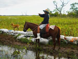 Na Varjão, ainda há a placa da época do safári, mas enferrujada. Hoje, são cerca de 2 mil hectares de plantações de soja. Chovia muito quando a reportagem chegou ao local, e a colheita feita por máquinas precisou ser adiada mais uma vez. Em vez dos campos verdes de soja, os brotos pareciam ressecados, e o herdeiro de Trajano, preocupado.