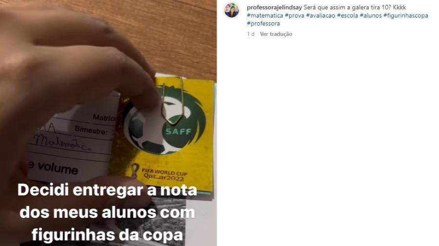 Professora dá figurinhas da Copa a alunos para incentivá-los em matemática