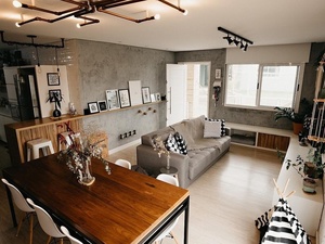 A pintura já deu um clima completamente diferente à casa. No mais, os móveis foram feitos por eles com a ajuda da mãe de Micaela, Laura, que ama o "faça-você-mesmo". "O único profissional que contratamos foi instalador elétrico."