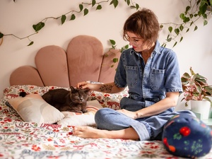 Nesta pequena galeria de arte que se tornou a sala, a curadoria de obras se guiou por "expressões do que é ser humano". Mas não vá embora sem passar pelo lavabo, de ouvidos abertos na parede a escutar o que vier, sem medo. Há coragem para ser quem é, em todas as esferas.