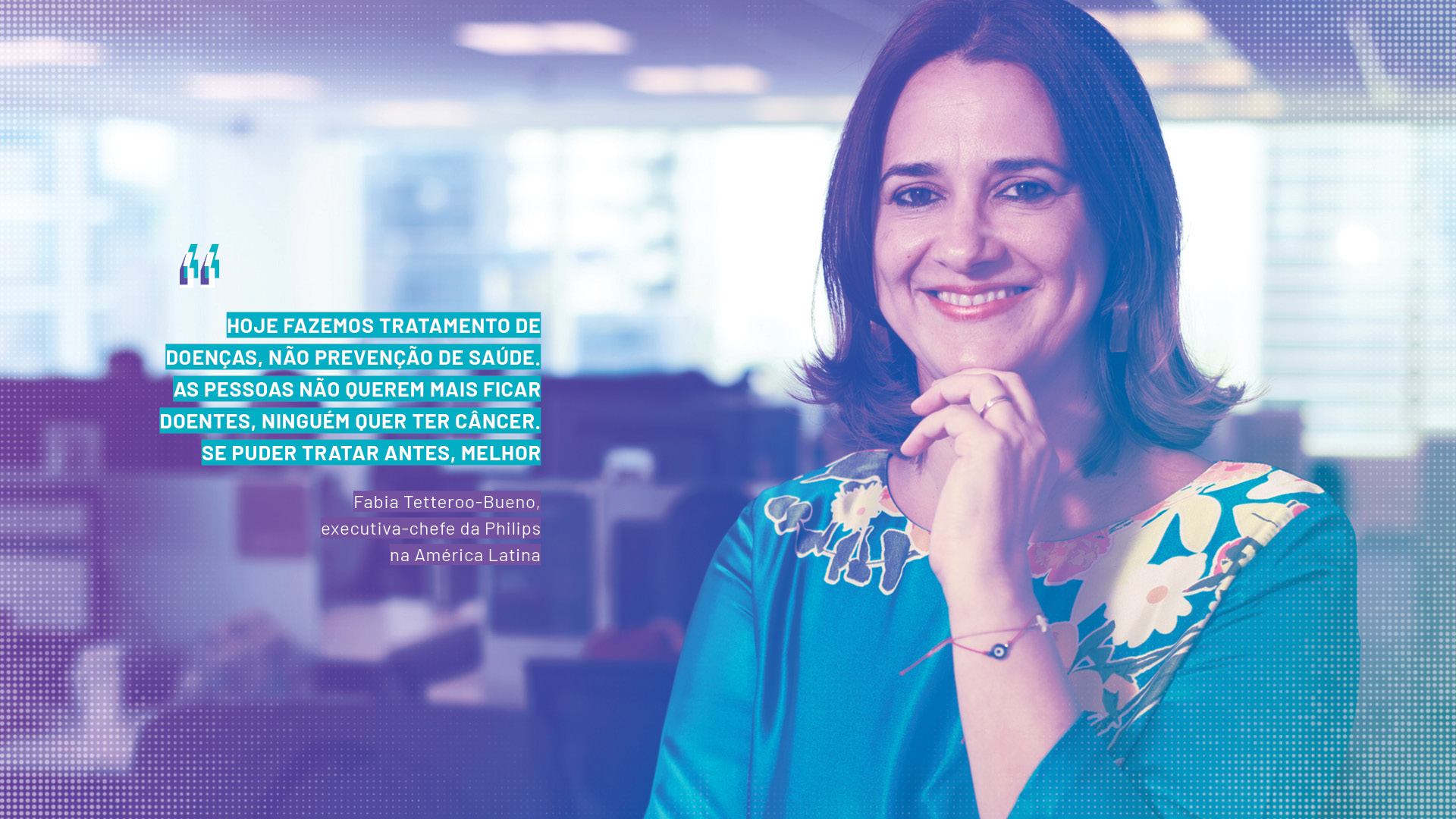 As dores provocadas pela pandemia do coronavírus fizeram o setor de saúde se transformar mundial. Além de descobertas científicas e importantes avanços médicos, ficará para a história uma virada no uso das tecnologias para melhorar o atendimento dos pacientes. É o que acredita Fabia Tetteroo-Bueno, executiva-chefe da Philips na América Latina. Em entrevista a Tilt, ela ressaltou que muitos avanços estavam há anos a ponto de mudar e foram acelerados pelas novas demandas.