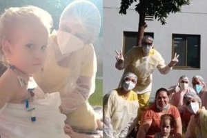 Uma das gêmeas siamesas que foram separadas em Goiânia faz passeio fora da UTI pela primeira vez