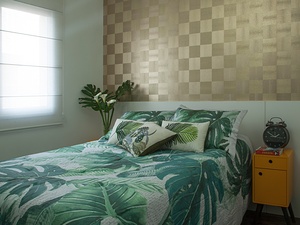 A nova morada precisava acomodar todos os pertences dos dois moradores com conforto e charme. “A melhor solução foi abrir tudo e integrar os ambientes”, diz a arquiteta. Assim, as duas portas de correr que separavam a varanda da sala de estar e do dormitório foram eliminadas e substituídas apenas por persianas "blackout" que, quando recolhidas, deixam entrar intensa luminosidade natural no apê.